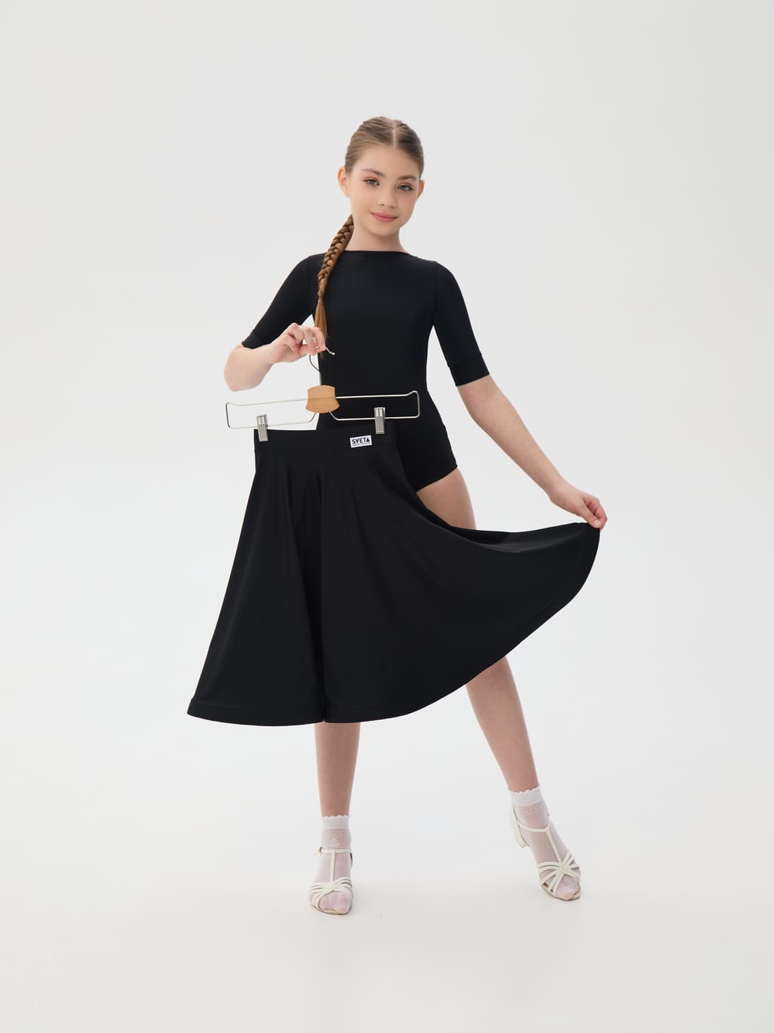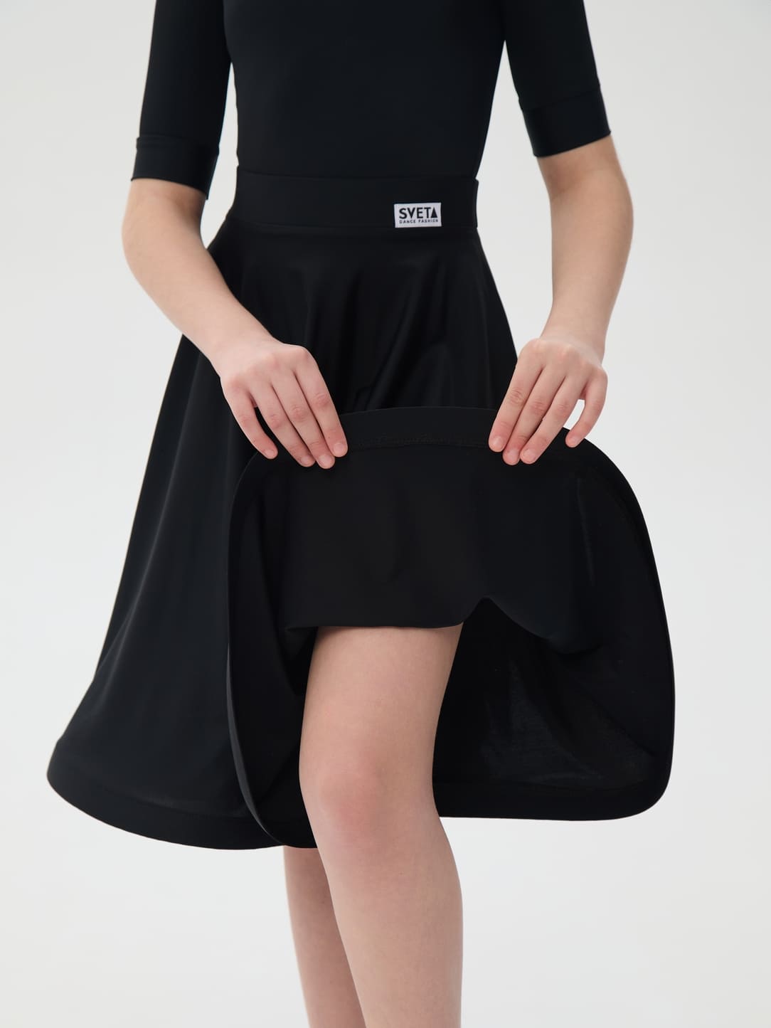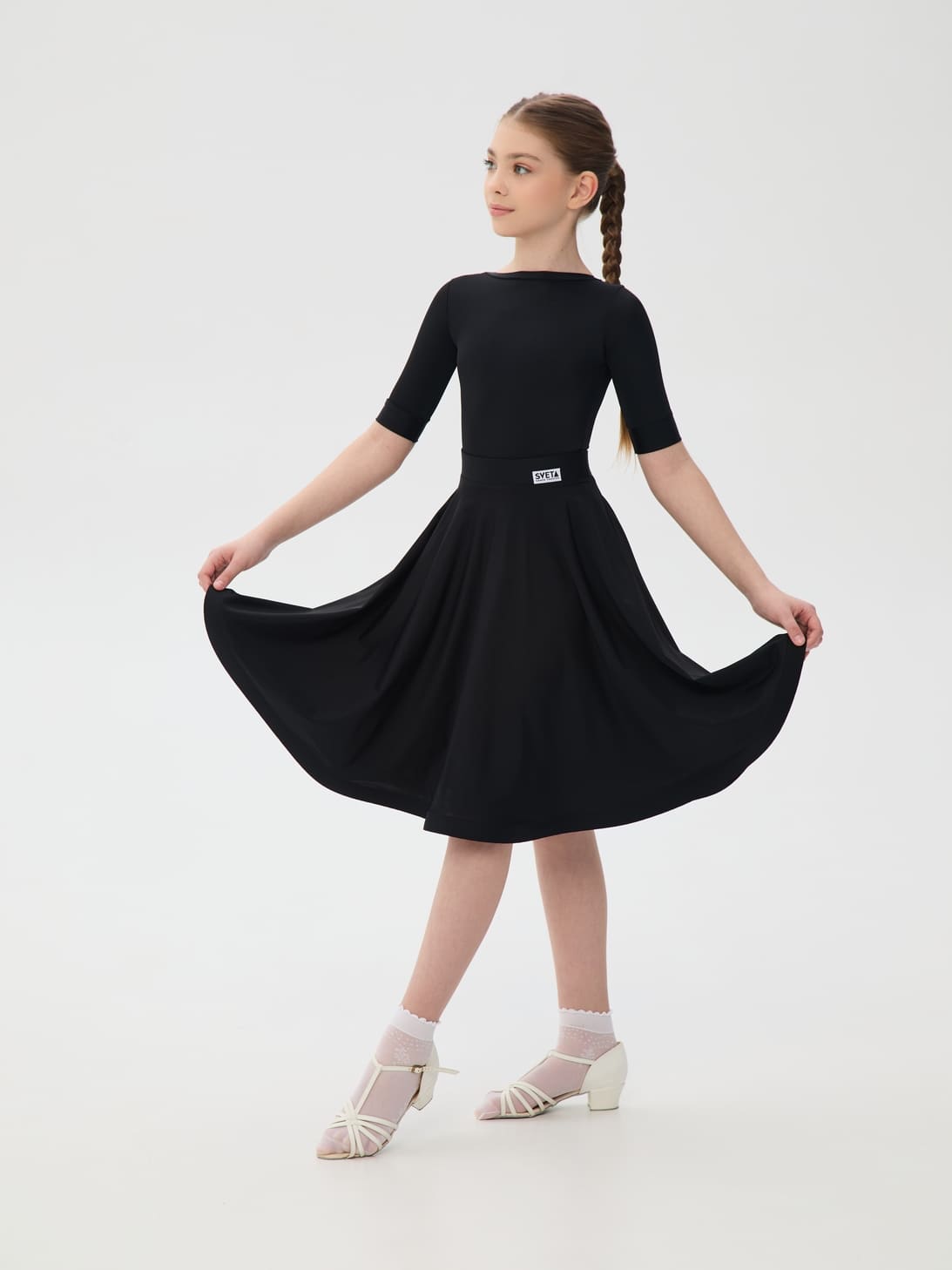 Фасон идеально подходит для танцовщиц категорий Н-класс, Дети-0, Дети-1, Дети-2, Юниоры-1: шорты полностью закрывают ягодицы, модель юбки – солнце. Боди без подклада, не просвечивает. Качественная лайкра хорошо пропускает воздух и легко переносит постоянную носку.